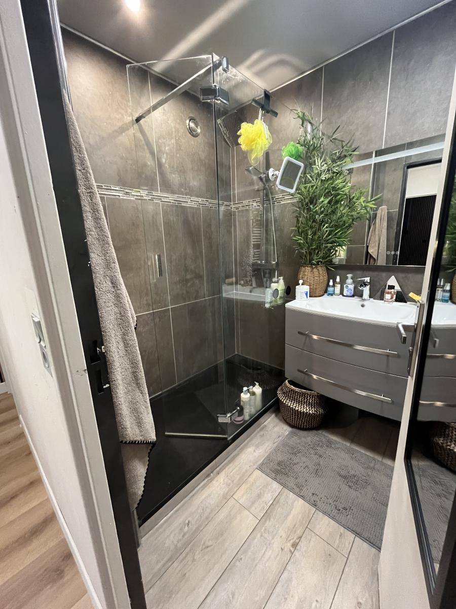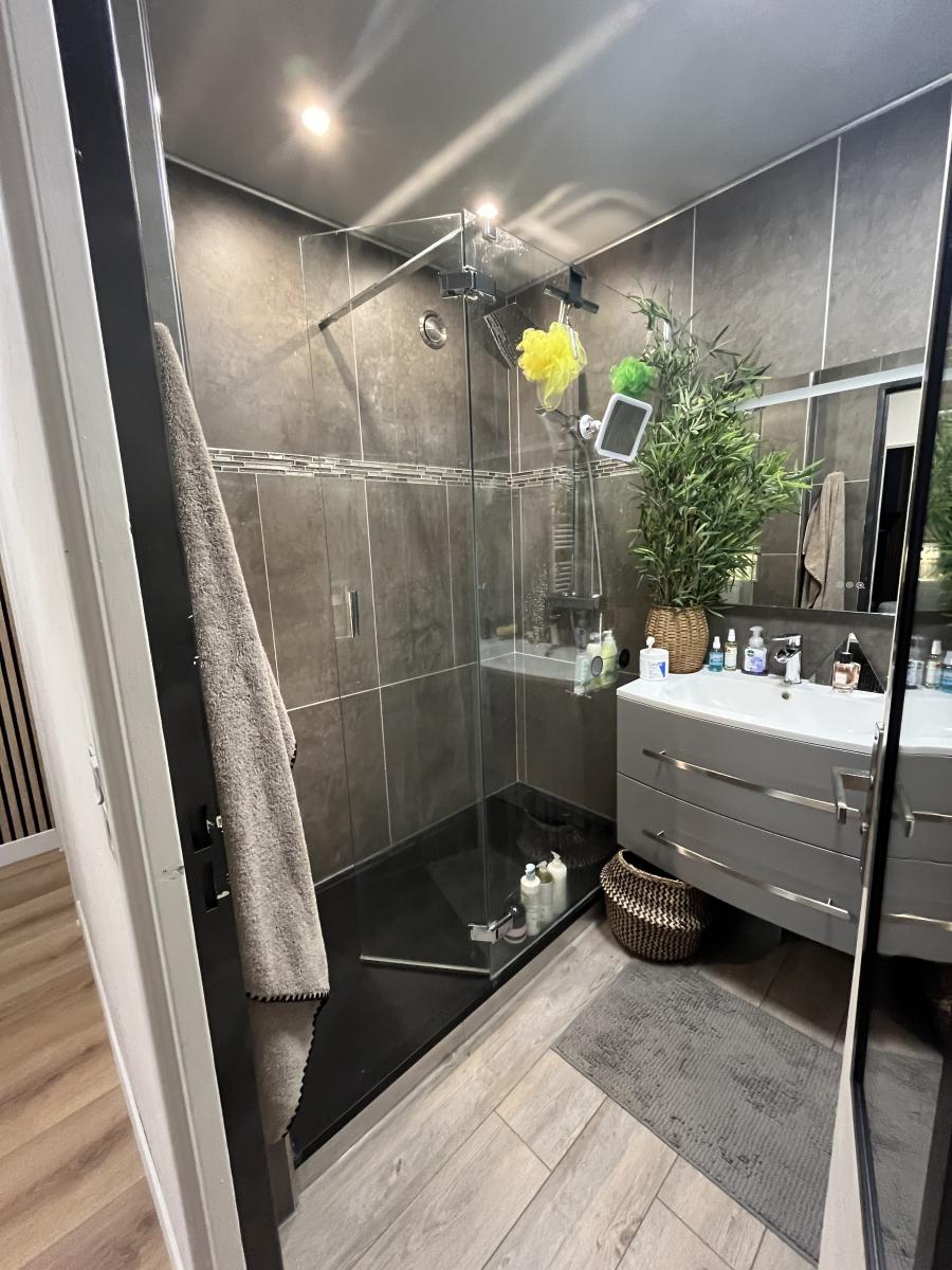 Le parquet est flottant sauf les pièces d'eau, il y a du double vitrage et des volets roulants électrique sur chaque fenêtres sauf celle de la cuisine.