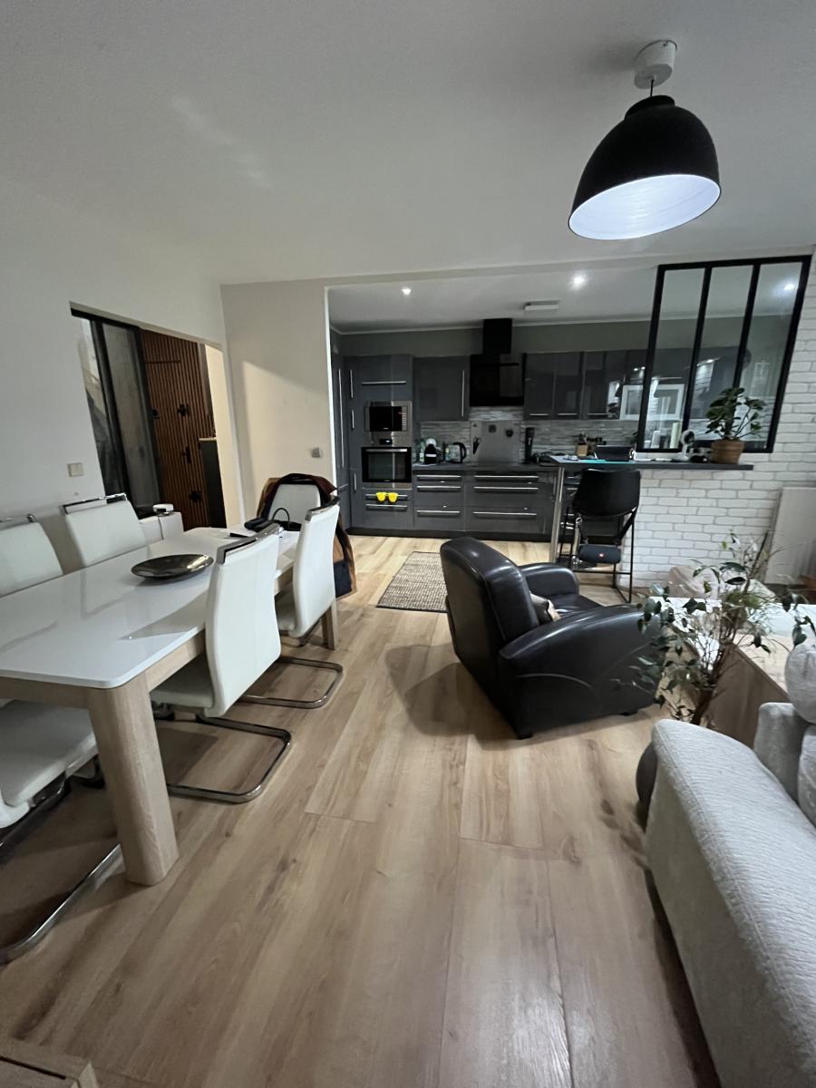 L'appartement se compose : Entrée, cuisine ouverte, double séjour (possibilité 3ème chambre)donnant sur balcon, 2 chambres avec balcon donnant sur jardin, WC séparé, salle d'eau, dégagement .